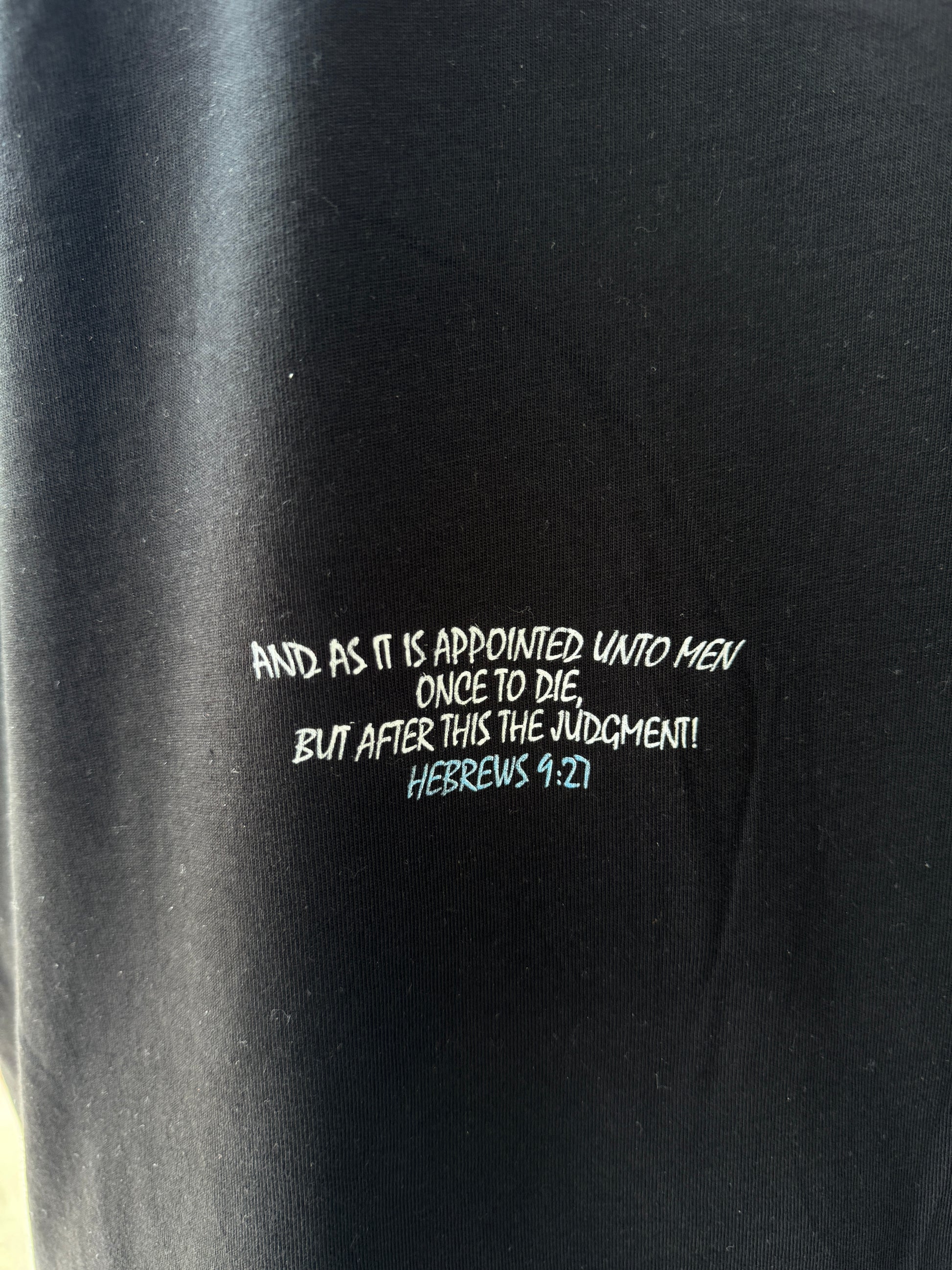 The Judgement Rapper T , is a billboard of the mission of our brand at Chainbreaker Co. It's an In your face reminder that our time o earth will come to an end, and when it does you will stand in front of that Judgement Throne - all alone. And you will either be sentenced to life with Jesus - or - DEATH ROW for all eternity!